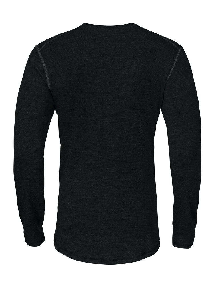 Undertröja i mulesingfri merinoull som håller kroppen varm och torr under kalla väderförhållanden. Sluter tätt mot kroppen. Förlängd baktill. Raglanärm för ökad komfort och rörelseförmåga. Mudd i ärmavslut, även tumgrepp.