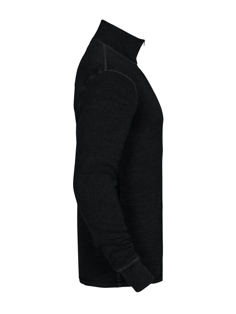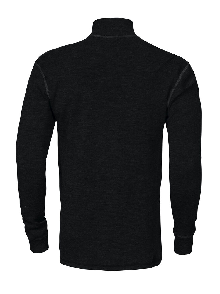 Undertröja i mulesingfri merinoull som håller kroppen varm och torr under kalla väderförhålladen. Kort dragkedja framtill med hakskydd för att förhindra skav. Sluter tätt mot kroppen. Raglanärm för ökad komfort och rörelseförmåga. Mudd i ärmavslut, även tumgepp. XX