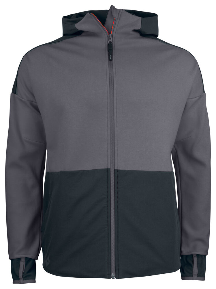 Hoodjacka i ett skönt tekniskt material som värmer. Förstärkningar i softshell på utsatta områden såsom på framsidan nedtill och över axlarna, även huvan för ökad slitstyrka. Tight passform för maximal rörelsefrihet och komfort. Reflexdetaljer vid axlarna på fram- och baksida. Sidfickor med dragkedja. Rymliga innerfickor i mesh. Samtliga dragkedjor har tänder i kontrastfärg. Extra mudd vid ärmslut med tumgrepp.