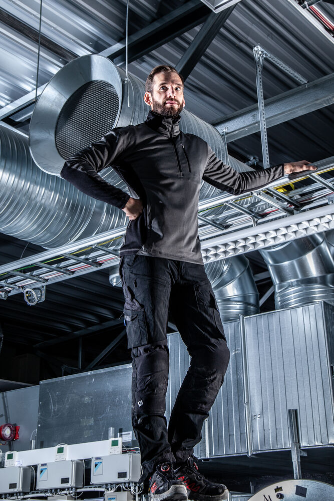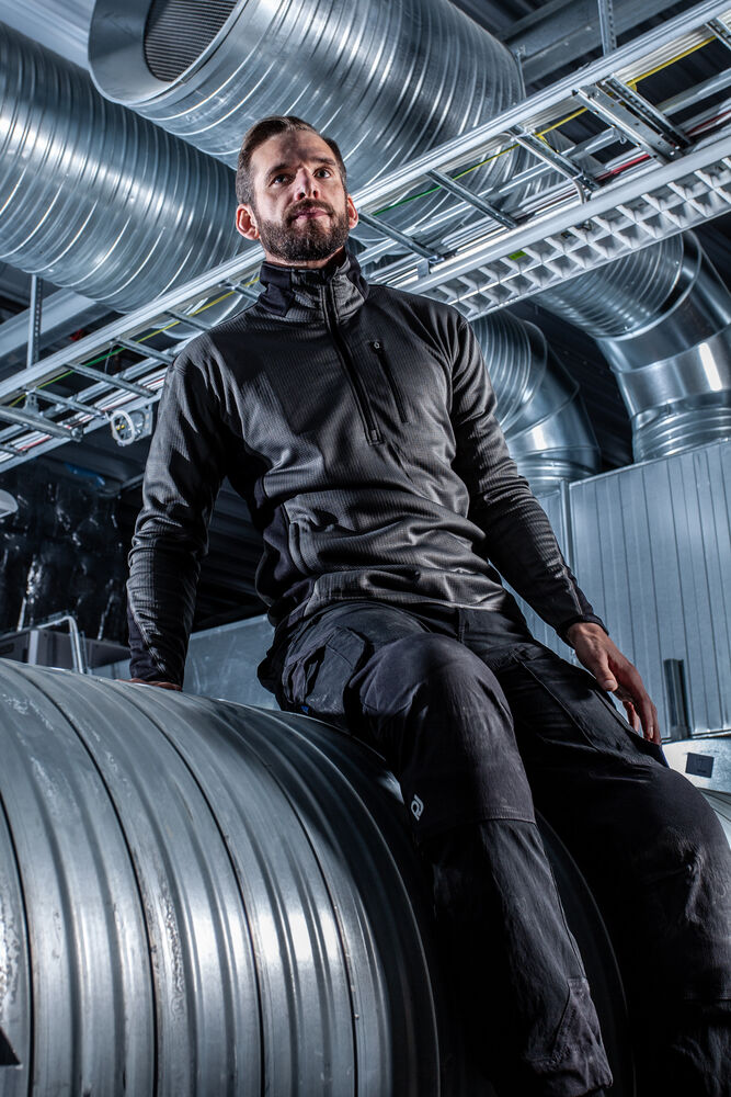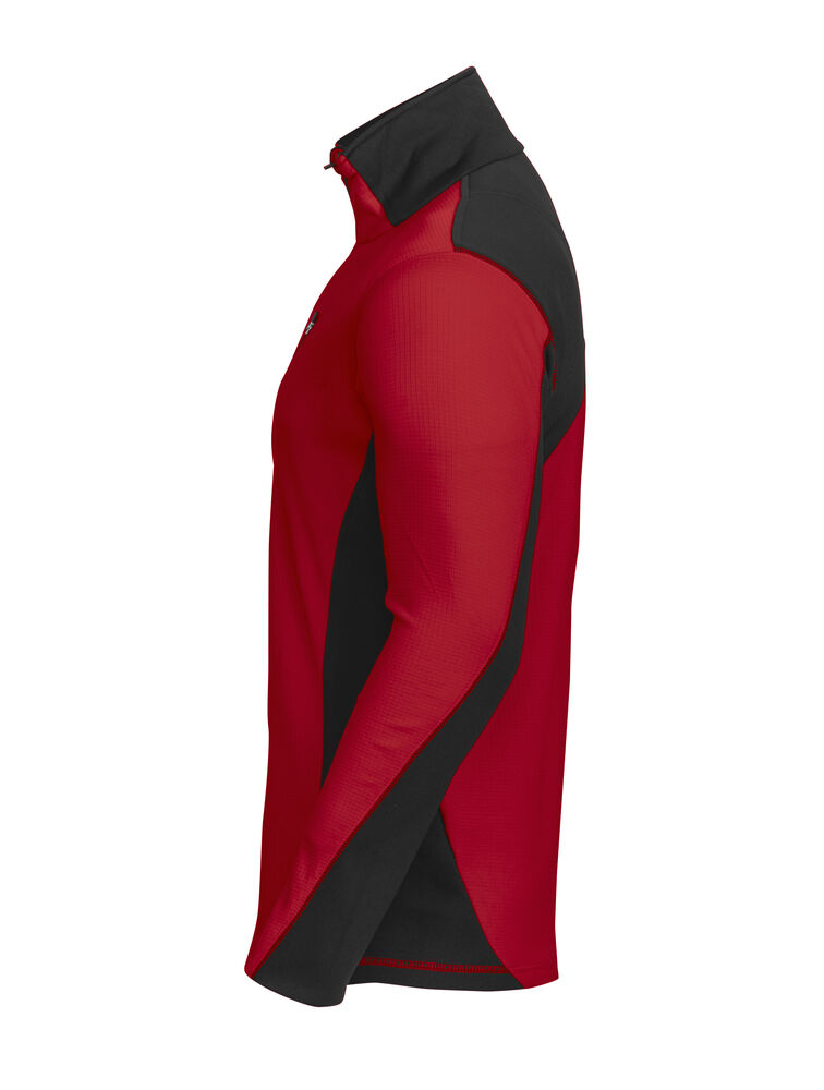 Funktionströja med polo i modern passform. Fleecefoder i kragen för en mjuk och skön känsla. Kort dragkedja framtill med hakskydd för att förhindra skav mot hakan. Bröst- och sidficka med dragkedja. Färgerna röd-35 och grå-98 har kontrastpartier i svart för en tuff design.