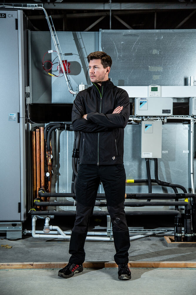 Vindtät och vattenavvisande jacka i ett lätt stretchigt material. Tvåvägsdragkedja framtill med hakskydd för att förhindra skav på hakan. Sidfickor med dragkedja. Samtliga dragkedjor har tänder i kontrastfärg. Innerfickor, den ena med hål för handsfree. Tumgrepp. Reglerbar midja med snodd.