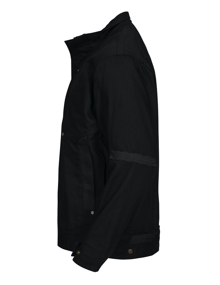 Slitstark jacka i grov canvas med förstärkningar i Cordura® för ökad hållbarhet. Bröstfickor, den högra med plats för pennor och verktyg, även en telefonficka som försluts med kardborre. En ID-kortshållare kommer med jackan. På vänster sida en stor bröstficka för dokument. Sidfickor. Rymliga innerfickor, en med dragkedja samt en som försluts med kardborre. Förböjda ärmar för ökad komfort. Dragkedja upp i kragen framtill, med slå som försluts med tryckknappar. Reglerbar i midja samt ärmslut med tryckknappar. Cordura®detaljer med reflex vid fickor, ärmar och bak på ryggen.