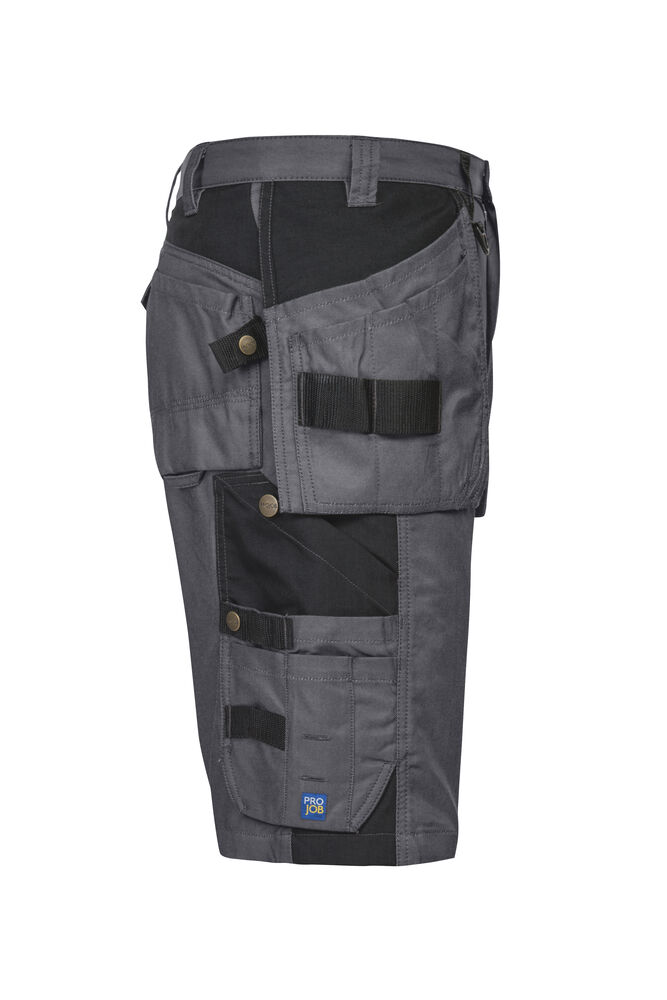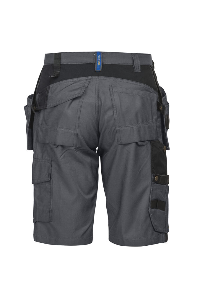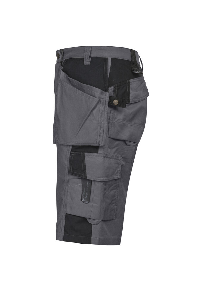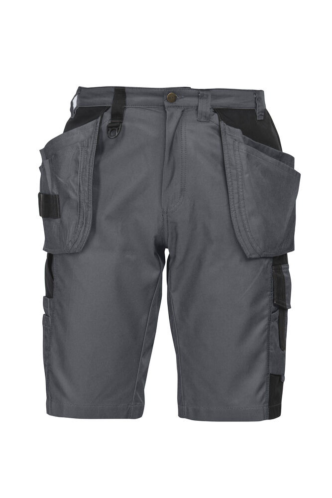 Shorts i slitstarkt material. Undanstoppningsbara hängfickor med förstärkningar i Cordura®, den ena med extra fickor och den andra med hållare för verktyg. Benfickor, på vänster sida ficka med lock som försluts med tryckknapp, invändig telefonficka samt fäste för ID-kort. På höger sida ficka för tumstock samt verktygsficka med knivknapp. Bakfickor med övervidd, den vänstra med lock. Två reglerbara hammarhankar. Två D-ringar. XX