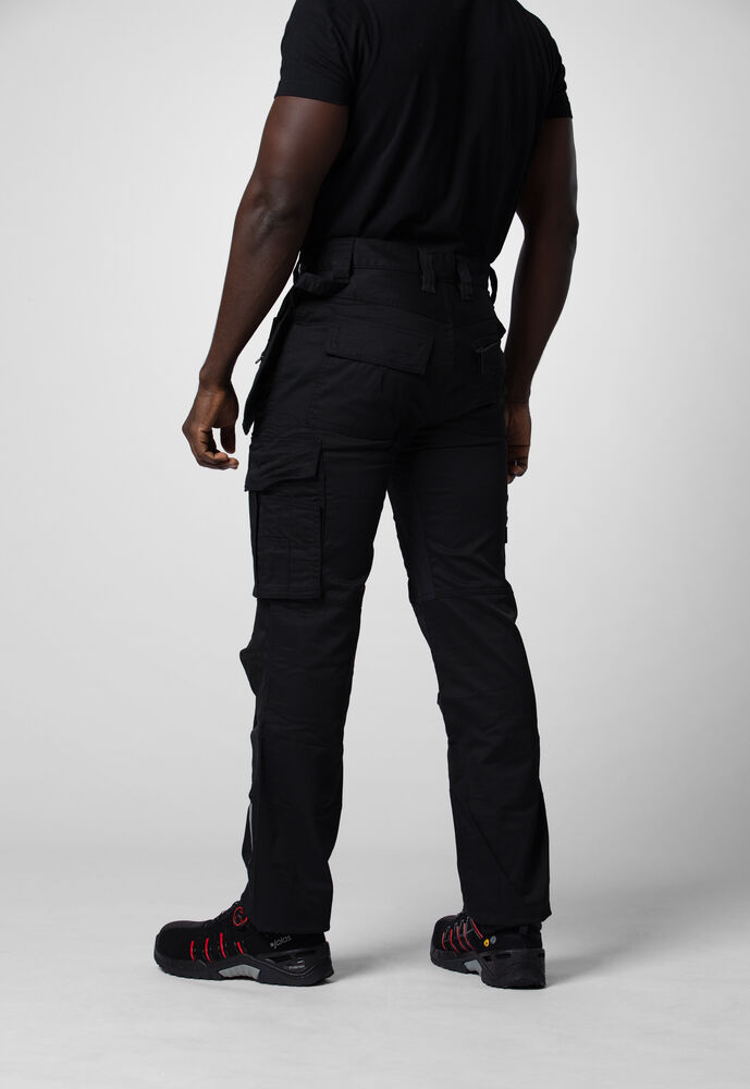 Hantverksbyxa med undanstoppningsbara hängfickor, den ena med dragkedja. Bakfickor med lock och kardborrestängning. Benficka med extrafack och lock med kardborrestängning. Tumstocksficka med knivhållare. Förstärkning i hängfickor, tumstocksfickan och på knäskyddsfickor. Reflexdetaljer på utsida ben. Förböjda knän med knäskyddsfickor som går att reglera i två höjder, öppning inifrån. C42-C64 kan förlängas med 5 cm genom ett utvik i benslutet.