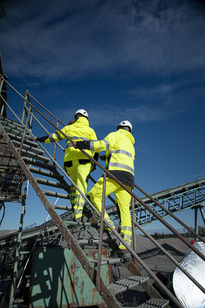 Hantverksbyxa i stretch för maximal rörelsefrihet. Modern passform. Fyrvägsstretch över lår och bak. Sidorna upptill är inte i stretch för att ge bättre stadga åt byxan. Ventilationskanaler med dragkedja längs båda benen, även ventilation i midja. Benfickor, på vänster sida med plats för verktyg och penna, även en mobilficka med magnetlås och fäste för ID-kortshållare. På höger sida tumstocks- och verktygsficka med knivknapp. Sidfickorna är förstärkta upptill med Cordura® för att kunna fästa mätband. Fästen för verktygshållare. Möjlighet att fästa MOLLE-system på båda sidor. Justerbara benslut med snodd. Förböjda knän med knäskyddsfickor som går att reglera i två höjder, öppning inifrån. Knäna är förstärkta med Kevlar för maximal slitstyrka. Segmenterade reflexer från 3M.