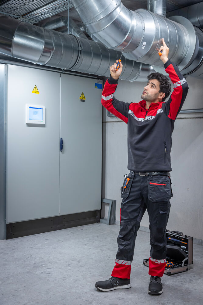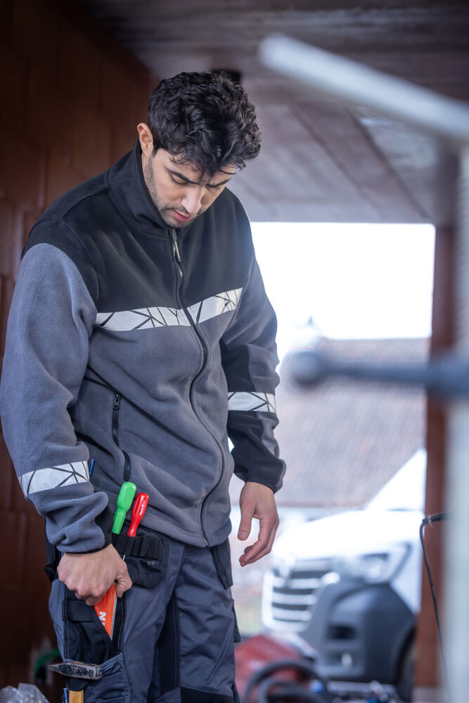 Hantverksbyxa med öppna sidfickor samt bakfickor med extra vidd, den vänstra med lock och magnetstängning. Hängfickor på båda sidor för verktyg, pennor etc. Benfickor, på vänster sida ficka med lock och magnetstängning, invändig mobilficka och fäste för ID-kort. På höger sida ficka för tumstock och ficka för verktyg med knivfäste. Knäskyddsfickor med öppning från utsidan med dragkedja. Bredare bälteshälla baktill för att förhindra tryck från bälte. Dold midjeknapp framtill. Förböjda knän, stretchtyg i grenen och insydd stretchpanel i midjan för ökad komfort. Förstärkningsmaterial i tumstocksfickan, i bakfickorna och över knäna för ökad hållbarhet.