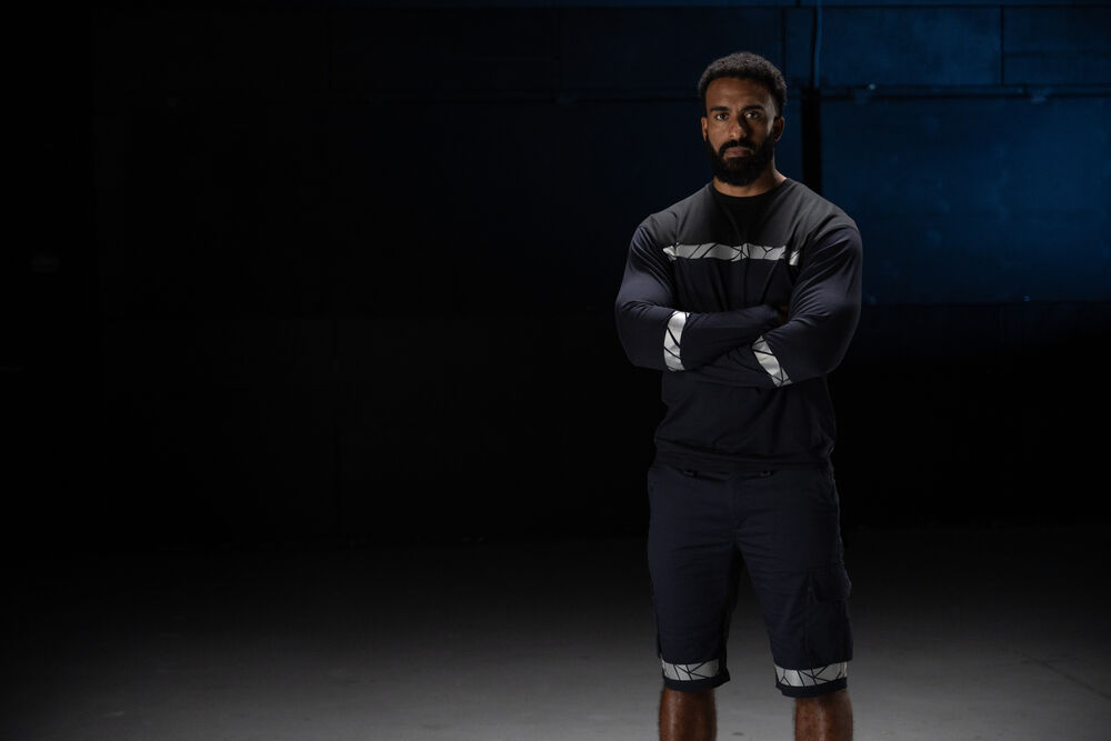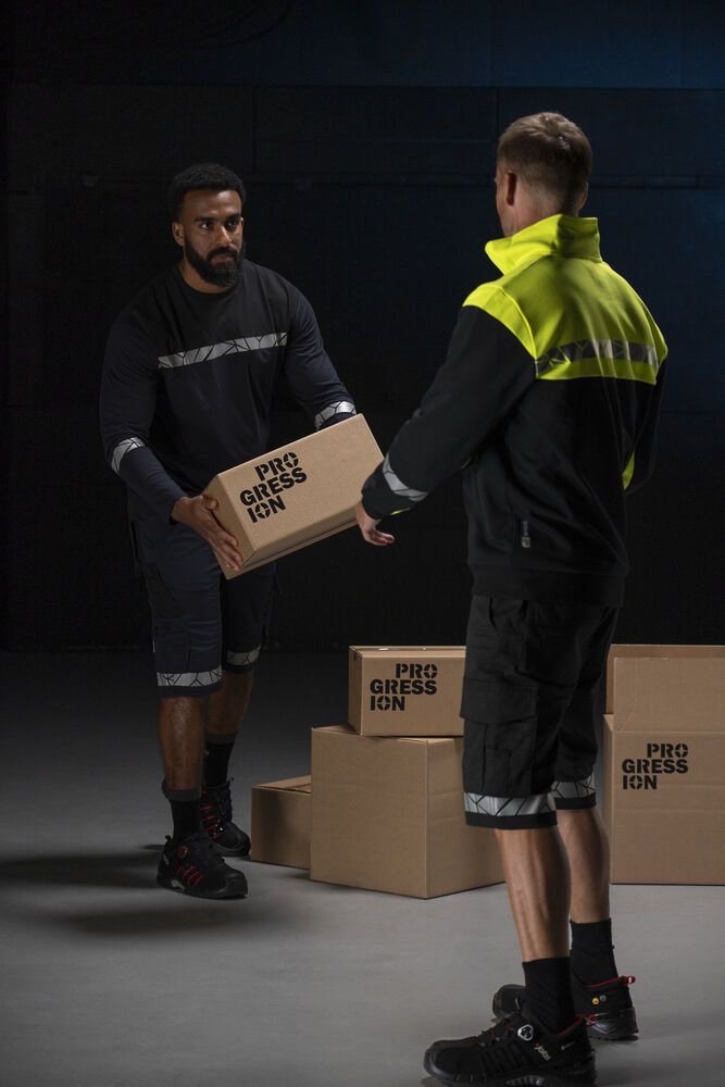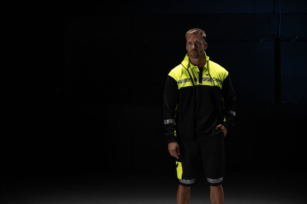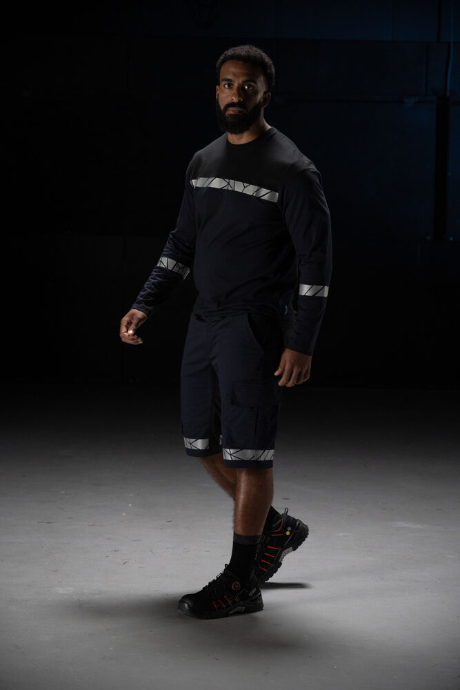 Arbetsshorts med öppna sidfickor samt bakfickor med extra vidd, den vänstra med lock och magnetstängning. Benfickor, på vänster sida ficka med klaff och magnetstängning, invändig mobilficka och fäste för ID-kort. På höger sida ficka för tumstock och ficka för verktyg med knivfäste. Stretchtyg i grenen och insydd stretchpanel i midjan för ökad komfort. Bredare bälteshälla baktill för att förhindra tryck från bälte. Dold midjeknapp framtill. Förstärkningsmaterial i tumstocksfickan och i bakfickorna för ökad hållbarhet.