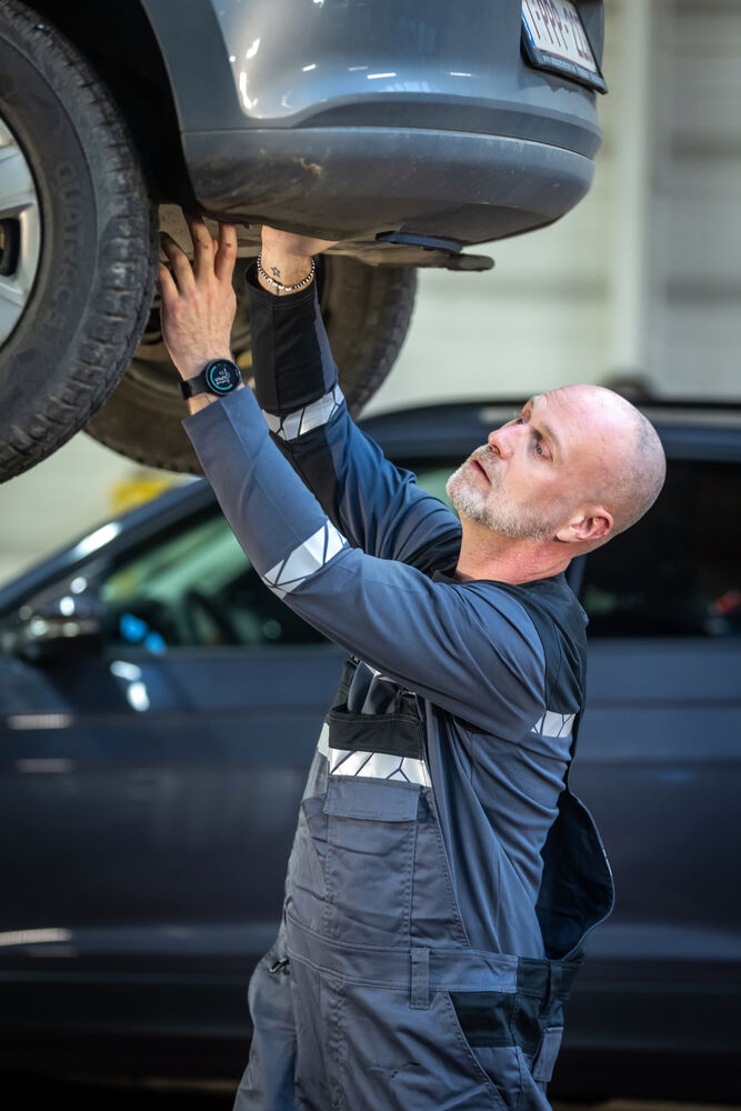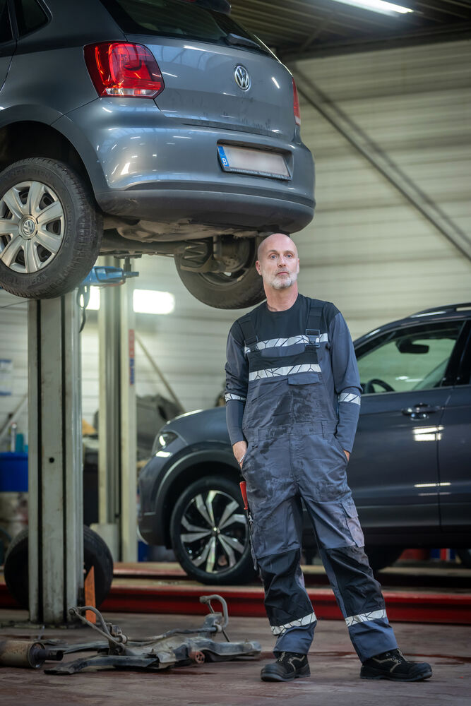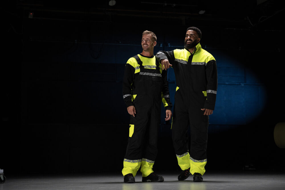 Hängselbyxa med justerbara, elastiska hängslen med spännen framtill. Öppna sid- och bakfickor, vänster sida med lock och magnetstängning. Bröstfickor för dokument, pennor etc. samt en ficka med kardborreförslutning. Benfickor, på vänster sida ficka med lock och magnetstängning, invändig mobilficka och fäste för ID-kort. På höger sida ficka för tumstock och ficka för verktyg med knivfäste. Knäskyddsfickor med öppning från utsidan med dragkedja. Förböjda knän, stretchtyg i grenen och justerbar insydd stretchpanel i midjan för ökad komfort. Förstärkningsmaterial i tumstocksfickan, i bakfickorna och över knäna för ökad hållbarhet.