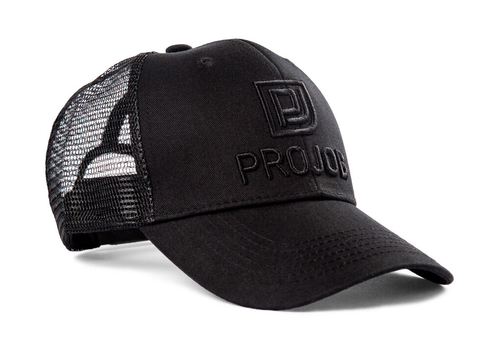Truckerkeps med PROJOB-brodyr framtill. Förböjd skärm. Reglerbar baktill.