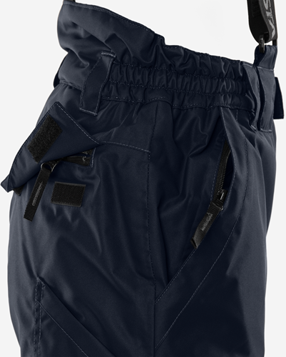 Airtech®, vatten- och vindtät med andasfunktion / Tejpade sömmar / Quiltfodrad / Avtagbara, reglerbara elastiska hängslen med fleeceparti baktill / Linning som är förhöjd baktill med resår i sidorna och hällor / Gylf med dragkedja / 2 framfickor med dold dragkedja / Bakficka med dragkedja och lock med kardborrefäste / 2 rymliga benfickor med lock och kardborrefäste / Tumstocksficka med verktygsficka / CORDURA®-förstärkta förböjda knän / Dolda dragkedjor från benslut till knä, under slå med kardborrefäste / Reglerbara benslut med kardborrefäste / Invändiga snölås / Reflexdetaljer på bakbenen / Vattenpelare 20.000 mm / Andasfunktion Airtech®-material RET <15 / Godkänd enligt EN 342 och EN 343 klass 4/1, yttertyget godkänt enligt EN 343 klass 4/4 / OEKO-TEX®-certifierad.