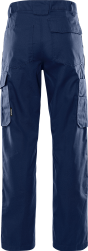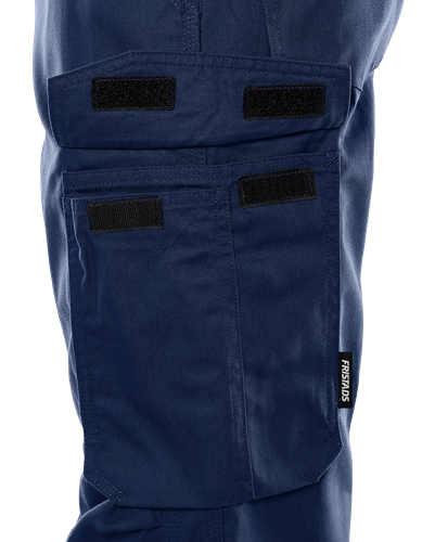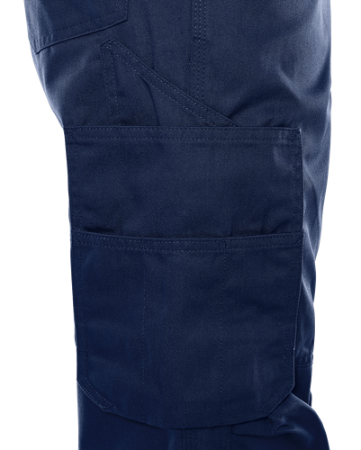 2 framfickor / 2 bakfickor, varav en med lock / Dold plastknapp fram / Benficka med invändig tumstocksficka – bekvämt placerad över sidsömmen – och tre extra fickor / Benficka och telefonficka med lock / Knäfickor med öppning utifrån och reglerbar höjd av knäskydden / 3-nålssömmar / Godkänd enligt EN 14404 tillsammans med knäskydd 124292 / Testad för industritvätt enligt ISO 15797 / OEKO-TEX®-certifierad.