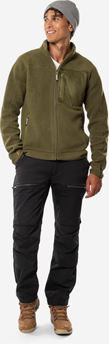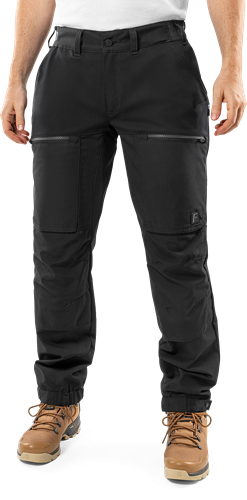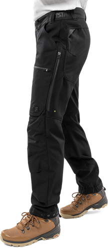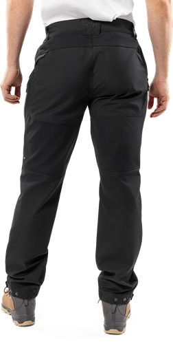 Återvunnet och ekologiskt material / 4-vägs stretchpartier fram, i sidor, gren, ok och baksida lår / Fluorkarbonfri vattenavvisande (DWR) impregnering på framsida lår, stuss och nederdel av ben / YKK-dragkedjor / Svarta reflexdetaljer / Linning med resår i sidorna / Förlängd bälteshälla / Dubbel förstärkt grensöm / 2 framfickor / 2 lårfickor med dragkedja och bälg, varav en med mobilficka / Mesh-ventilation med dragkedja längs lårens utsida / Knäfickor med öppning utifrån / Elastiska benslut, reglerbara med tryckknappar / Dold kängkrok / OEKO-TEX®-certifierad.