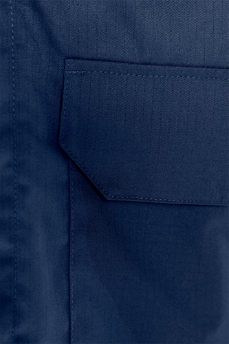 Dolda tryckknappar / Bröstficka med pennficka, lock med dold tryckknapp / 2 framfickor med lock och dold tryckknapp / Slits bak / Reglerbart ärmslut med tryckknapp / Testad och godkänd enligt IEC 61340-5-1 / OEKO-TEX®-certifierad.