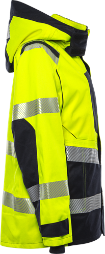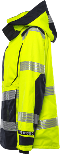 Multinorm / Inherent flamskydd / Vatten- och vindtät med andasfunktion / Tejpade sömmar / Smuts-, olje- och vattenavvisande / Avtagbar och reglerbar huva / Tvåvägs dragkedja ända upp i kragen under frontslå med kardborrelås / 2 bröstfickor med dold dragkedja, den ena med invändig D-ring / Kartficka med dragkedja och invändig telefonficka som nås även när plagget är stängt / 2 innerfickor, varav en med dragkedja / 2 fleecefodrade framfickor med dragkedja / Reglerbart ärmslut med invändig elastisk mudd / Förlängd rygg / Reglerbar nederkant med dragsko / Dragkedja i foder för transfer eller brodyr / Vattenpelare 10.000 mm / Andasfunktion RET 14,44 / Godkänd enligt EN 61482-1-2 APC 2, EN 61482-1-1 ELIM: 27 cal/cm², EN ISO 11612 A1 A2 B1 C1 F1, EN ISO 11611 A1 A2 klass 1, EN 1149-5, EN 13034 typ PB [6], EN ISO 20471 klass 2 för XS-S och klass 3 för M-4XL samt EN 343 klass 3/4 / Certifierad efter 25 tvättar / OEKO-TEX®-certifierad.