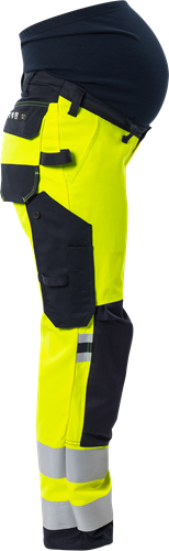 Flamskyddade gravidbyxor i ett lätt och slitstarkt stretchmaterial. Exceptionellt mjuka och bekväma multinorm-byxor med inherent flamskydd som ger överlägsen rörelsefrihet och hög säkerhet. Mammabyxorna har mjuk, elastisk överdel och justerbar midja som ger extra hög komfort på jobbet under graviditeten.