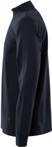 Inherent flamskydd / Halvpolo med kort dragkedja / Lång ärm / Godkänd enligt EN 61482-1-2 APC 1, EN 61482-1-1 ELIM: 4,1 cal/cm² EBT: 4,7 cal/cm², EN ISO 11612 A1 B1 C1 F1 och EN 1149-5 / OEKO-TEX®-certifierad.
