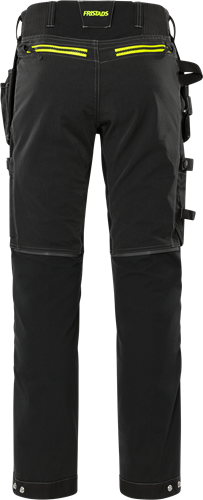 Delvis återvunnet och biobaserat material / Material med 4-vägsstretch / Slitstarkt ripstop-material med 4-vägsstretch på lår och baksida / Mycket elastiska stretchpartier ”smock” i midjan / 2 löst hängande spikfickor i CORDURA® med fickor med dragkedja i ovankant, den ena med 3 mindre fickor och verktygshällor, den andra med extra ficka / D-ring under löst hängande ficka / 2 framfickor / 2 bakfickor med dragkedja / Hammar