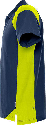 Kraftig tvåfärgad pikétröja av återvunnen polyester och bomull. Slitstark och bekväm pikétröja som är godkänd för industritvätt. Koncept: Skarup.