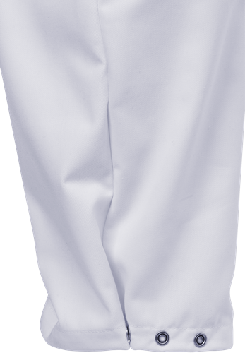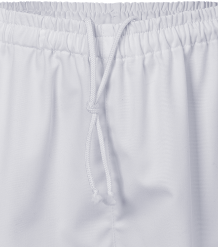 Anpassad för standarden DIN 10524 / Resår och dragsko i midja / Reglerbart benslut med metall-tryckknappar / Kan zon-märkas med sublimeringstryck eller brodyr / Testad för industritvätt enligt ISO 15797 / OEKO-TEX®-certifierad.