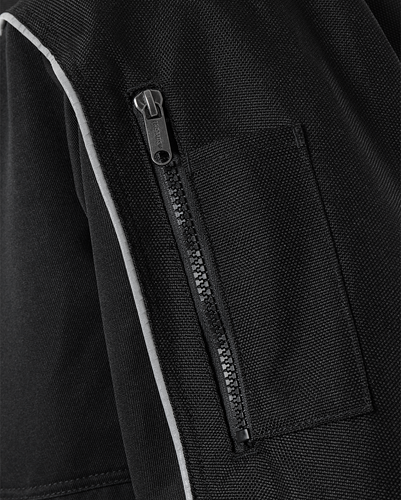 Polydex – slitstarkt och vattenavvisande / Kraftig förstärkning på axelparti och ärmar / Quiltfodrad / Pälsfiberfodrad krage / Dragkedja ända upp i kragen med invändig slå / 2 bröstfickor med dragkedja / D-ring / 2 framfickor med dragkedja / Ärmficka med dragkedja och pennficka / 2 innerfickor / Förböjda ärmar / Ribbstickad mudd i ärmslut och nederkant / Reflexpasspoaler fram och bak / Dragkedja i foder för transfer och brodyr / Godkänd enligt EN 342 / OEKO-TEX®-certifierad.