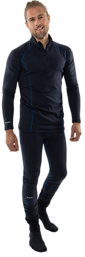 Polartec® Power Stretch® – elastisk smidig microfleece med 4-vägsstretch / Hög värmekapacitet / Slät utsida och borstad insida / Transporterar fukt / Hög andasfunktion / Torkar snabbt / Polokrage med kort dragkedja / Kontrastsömmar / OEKO-TEX®-certifierad.