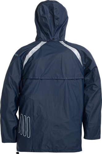 Vattentätt stretchmaterial / Svetsade sömmar / Avtagbar reglerbar huva / Tvåvägs dragkedja under tryckknappslå / Ventilation i ok fram och bak / Dold id-kortsficka / Innerficka med telefonficka / 2 framfickor / Reglerbart ärmslut / Dragsko i nederkant / Reflexdetaljer / Godkänd enligt EN 343 klass 4/1 / OEKO-TEX®-certifierad.
