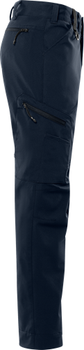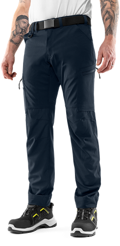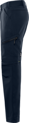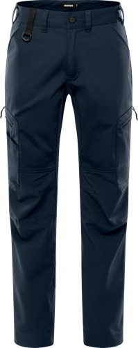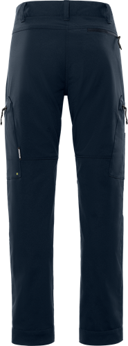Delvis återvunnet och biobaserat material / Material med 4-vägsstretch / Slitstarkt lättviktsmaterial med 4-vägsstretch vid stuss, baksida lår, gren, knän och framsida av nedre ben / D-ring vid linningen / 2 framfickor / Bakficka med dragkedja / 2 rymliga benfickor med dragkedja, den ena med 2 pennfickor / Förböjda knän / Extra benupplägg, kan förlängas 5 cm / OEKO-TEX®-certifierad.