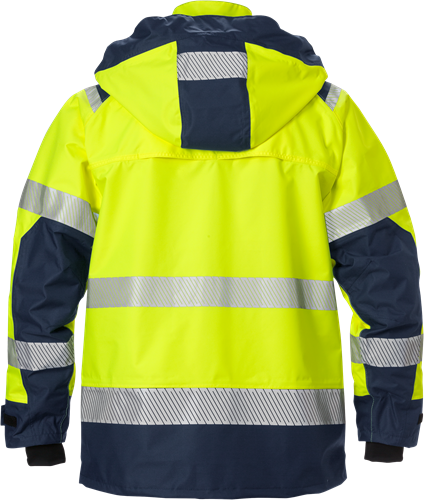 Airtech®, vatten- och vindtät med andasfunktion / Tejpade sömmar / Avtagbar reglerbar huva / Fleecefodrad krage / Dragkedja upp i kragen under frontslå med kardborreknäppning / 2 bröstfickor med dragkedja / Dold ID-kortsficka / Kartficka med invändig telefonficka som nås även när plagget är stängt / 2 fleecefodrade framfickor med dragkedja / 2 innerfickor med dragkedja / Reglerbart ärmslut med invändig mudd med tumgrepp / Reglerbar nederkant med dragsko / Förlängd rygg / Nätfoder / Dragkedja i foder för transfer eller brodyr / Vattenpelare 20.000 mm / Andasfunktion Airtech®-material RET <15 / Godkänd enligt EN ISO 20471 klass 2 för XS-S och klass 3 för M-4XL samt EN 343 klass 4/4 / Certifierad efter 25 tvättar / OEKO-TEX®-certifierad.