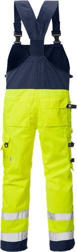 Reglerbara elastiska hängslen / Tvåvägs dragkedja under frontslå med tryckknappar / 2 bröstfickor, den ena med lock, tryckknapp och D-ring, den andra med tryckknapp och pennficka / Knappar och hällor för kniv / 2 löst hängande, invikbara spikfickor – den vänstra med extra ficka, den högra med 3 fickor och verktygshällor / D-ring vid linningen / 2 bakfickor, varav en med lock / Hammarhank / Benficka med lock, telefonficka med lock, D-ring och ID-kortsficka / CORDURA®-förstärkt tumstocksficka med verktygsficka samt 2 knappar och hällor för kniv / Dubbel förstärkt grensöm / Förstärkning på lår / Förböjda ben / Knäfickor i CORDURA®, öppning inifrån och reglerbar höjd av knäskydden / CORDURA®-förstärkta benslut / Godkänd enligt EN ISO 20471 klass 2, EN 13758-2 UPF 40+ UV-skydd och EN 14404 tillsammans med knäskydd 124292 / Certifierad efter 50 tvättar / Testad för industritvätt enligt ISO 15797 / Miljödeklarerad, EPD reg.nr 3885 på environdec.com / OEKO-TEX®-certifierad.