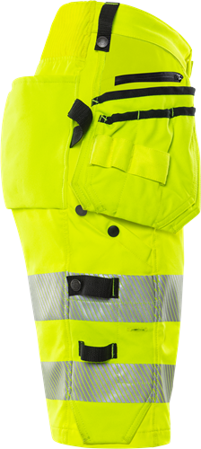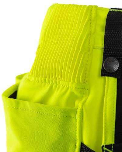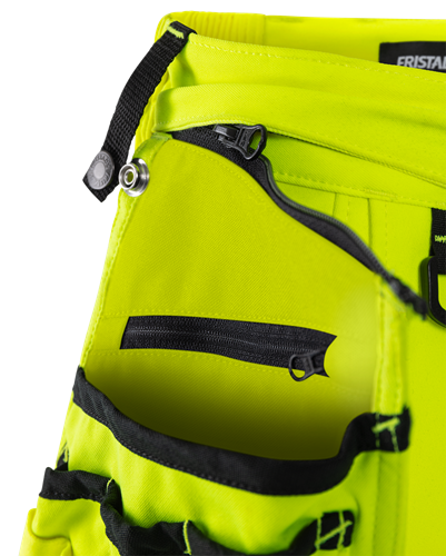 Delvis biobaserat och återvunnet material / 4-vägsstretch / Ribbstickade stretchpartier i midjan / Segmenterade reflexer för bättre rörelsefrihet / Dold knapp fram / 2 löst hängande CORDURA®-förstärkta spikfickor – den ena med ficka med dragkedja, 3 mindre fickor och verktygshällor, den andra med extra ficka / Spikfickorna är avtagbara med dold dragkedja / D-ring under spikfickan / 2 framfickor / 2 förstärkta bakfickor med lös botten / Dubbel förstärkt grensöm / Hammarhank / CORDURA®-förstärkt tumstocksficka med verktygsficka, pennficka samt knapp och hälla för kniv / Benficka med tryckknapp, ficka med dragkedja och D-ring / Godkända enligt EN ISO 20471 klass 1 / Certifierade efter 50 tvättar / OEKO-TEX®-certifierade.