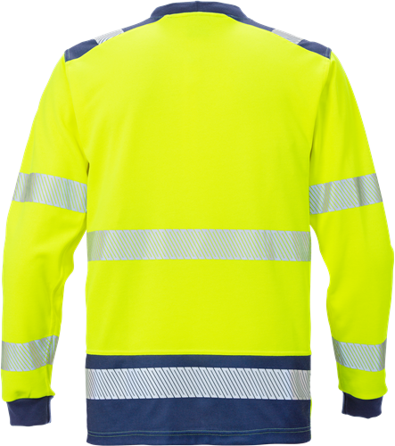 Transporterar fukt / Snabbtorkande / Stretchmaterial / Bomull på insidan / Stretch-reflexer / Ribbstickad halskant och ärmmudd / Godkänd enligt EN ISO 20471 klass 2 för XS och klass 3 för S-4XL samt EN 13758-2 UPF 40+ UV-skydd / Certifierad efter 25 tvättar / OEKO-TEX®-certifierad.