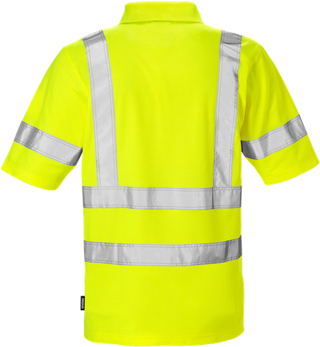 Lämplig för industritvätt – påsydda reflexer / Transporterar fukt / Snabbtorkande / Stretchmaterial / Bomull på insidan / Ribbstickad krage / Kort knappslå / Infällningar i sidorna och ärmarna utan reflex, för bättre rörelsefrihet / Godkänd enligt EN ISO 20471 klass 2 för XS-M och klass 3 för L-3XL samt EN 13758-2 UPF 40+ UV-skydd / Godkänd efter 25 tvättar / Testad för industritvätt enligt ISO 15797 / OEKO-TEX®-certifierad.
