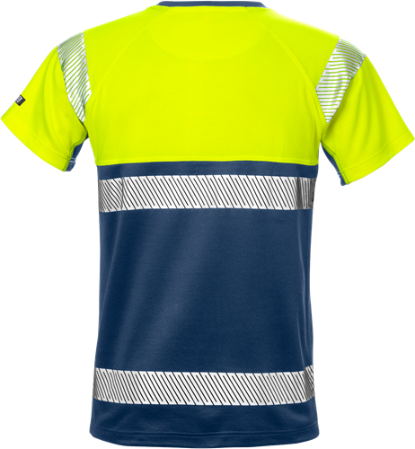 Transporterar fukt / Snabbtorkande / Stretchmaterial / Bomull på insidan / Stretch-reflexer / Ribbstickad halskant / Raglanärm / Godkänd enligt EN ISO 20471 klass 1 och EN 13758-2 UPF 40+ UV-skydd / Certifierad efter 25 tvättar / OEKO-TEX®-certifierad.