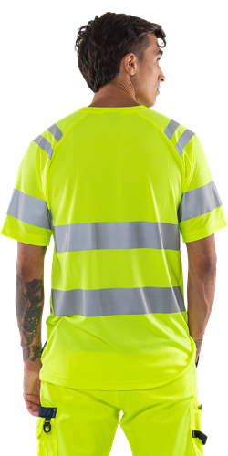 Återvunnet funktionsstickat material / Stretchreflexer / Raglanärm / Infällningar i sidorna och ärmarna utan reflex, för ännu bättre rörelsefrihet / Godkänd enligt EN ISO 20471 klass 2 för XS-M och klass 3 för L-4XL / Certifierad efter 25 tvättar / OEKO-TEX®-certifierad.