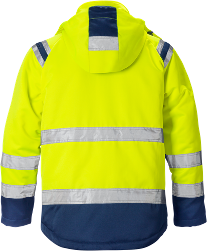 Polydex – smuts-, olje- och vattenavvisande / Quiltfodrad / Avtagbar och reglerbar fodrad huva / Fleecefodrad krage / Dragkedja ända upp i kragen under frontslå / Bröstficka med lock, invändig D-ring, ID-kortsficka och vertikal ficka med dragkedja / Bröstficka med dragkedja / Kartficka med dragkedja och invändig telefonficka, som nås även när plagget är stängt / 2 fleecefodrade framfickor med dragkedja / 2 innerfickor med dragkedja / Reglerbart ärmslut med invändig mudd / Dragsko i nederkant / Förlängd rygg / Dragkedja i foder för transfer och brodyr / Godkänd enligt EN ISO 20471 klass 3 och EN 342 / Certifierad efter 25 tvättar / OEKO-TEX®-certifierad.