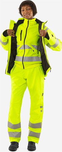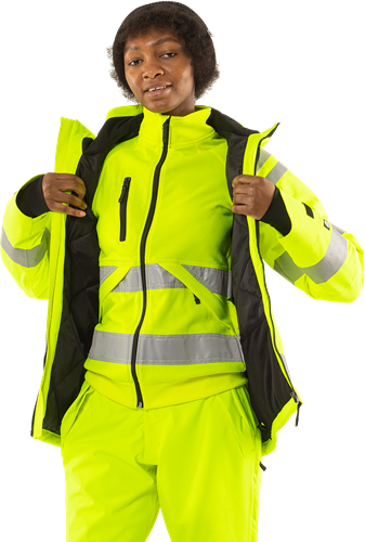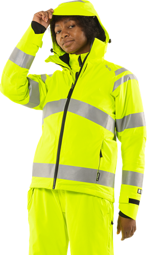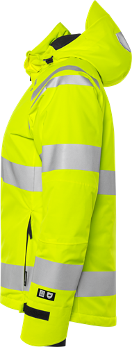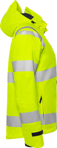 Delvis återvunnet material / Yttertyg med 4-vägsstretch / Vatten- och vindtät med andasfunktion / Tejpade sömmar / Quiltfoder / Avtagbar och reglerbar huva med förstärkt framkant / Fleecefodrad krage / Vattenavvisande tvåvägs dragkedja ända upp i kragen med invändig slå / Bröstficka med dold vertikal dragkedja och invändig hälla för id-kortshållare / Fleecefodrade framfickor med dragkedja / Innerficka i mesh med elastisk kant / Förböjda ärmar / Reglerbart ärmslut med rundad ovansida / Invändig elastisk mudd med tumgrepp / Ventilerande foder i ärmhål och ärmslut / Dragsko i nederkant / Förlängd rygg / Dragkedja i foder för transfer / Vattenpelare 13.000 mm / Andasfunktion yttertyg RET <15 / Godkänd enligt EN ISO 20471 klass 3, EN 342 och EN 343 klass 4/1, yttertyget är godkänt enligt EN 343 klass 4/4 / Certifierad efter 20 tvättar / OEKO-TEX®-certifierad.