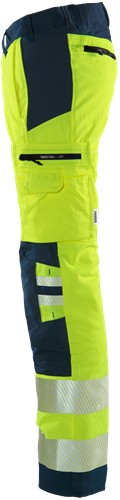 Partier med 4-vägs stretch i midja, sidor, ok bak och gren / 2 sidfickor / D-ring / 2 bakfickor med dragkedja / Dubbel förstärkt grensöm / Stor rymlig benficka med tumstocksficka och dokumentficka med kardborreknäppning / Benficka med telefonficka, ficka med dragkedja och D-ring för id-kortshållare / CORDURA®-förstärkta knäfickor med öppning inifrån / Knäskydden i knäfickorna kan höjdjusteras / CORDURA®-förstärkning i benslut / Godkänd enligt EN ISO 20471 klass 2 och EN 14404 tillsammans med knäskydden 124292 (9200 KP) / Certifierad efter 25 tvättar / Miljödeklarerad, EPD reg.nr 3881 på environdec.com / OEKO-TEX®-certifierad.
