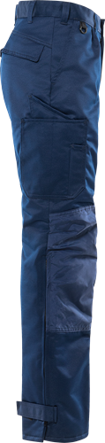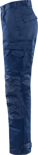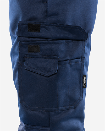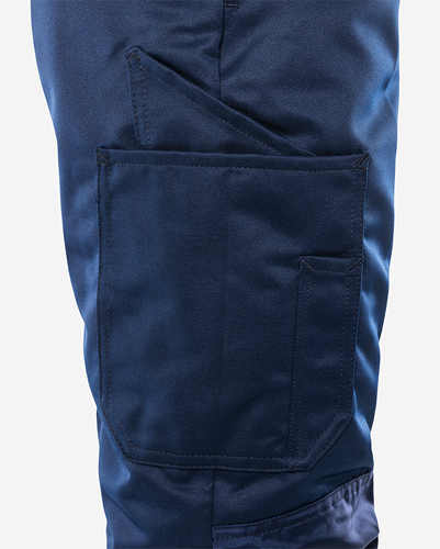Polydex – slitstarkt och vattenavvisande / Quiltfodrad / Linning med hällor / D-ring / Gylf med dragkedja / 2 framfickor / 2 bakfickor med lock och kardborrelås / Benficka med tumstocksficka och pennficka / Benficka med telefonficka och pennfickor / Förböjda ben / Förstärkta knäfickor med öppning inifrån, reglerbar höjd av knäskydden / Benslut med rymlig vidd som kan justeras med dragkedja / Reglerbart benslut med kardborreslejf / Godkänd enligt EN 342 / OEKO-TEX®-certifierad.
